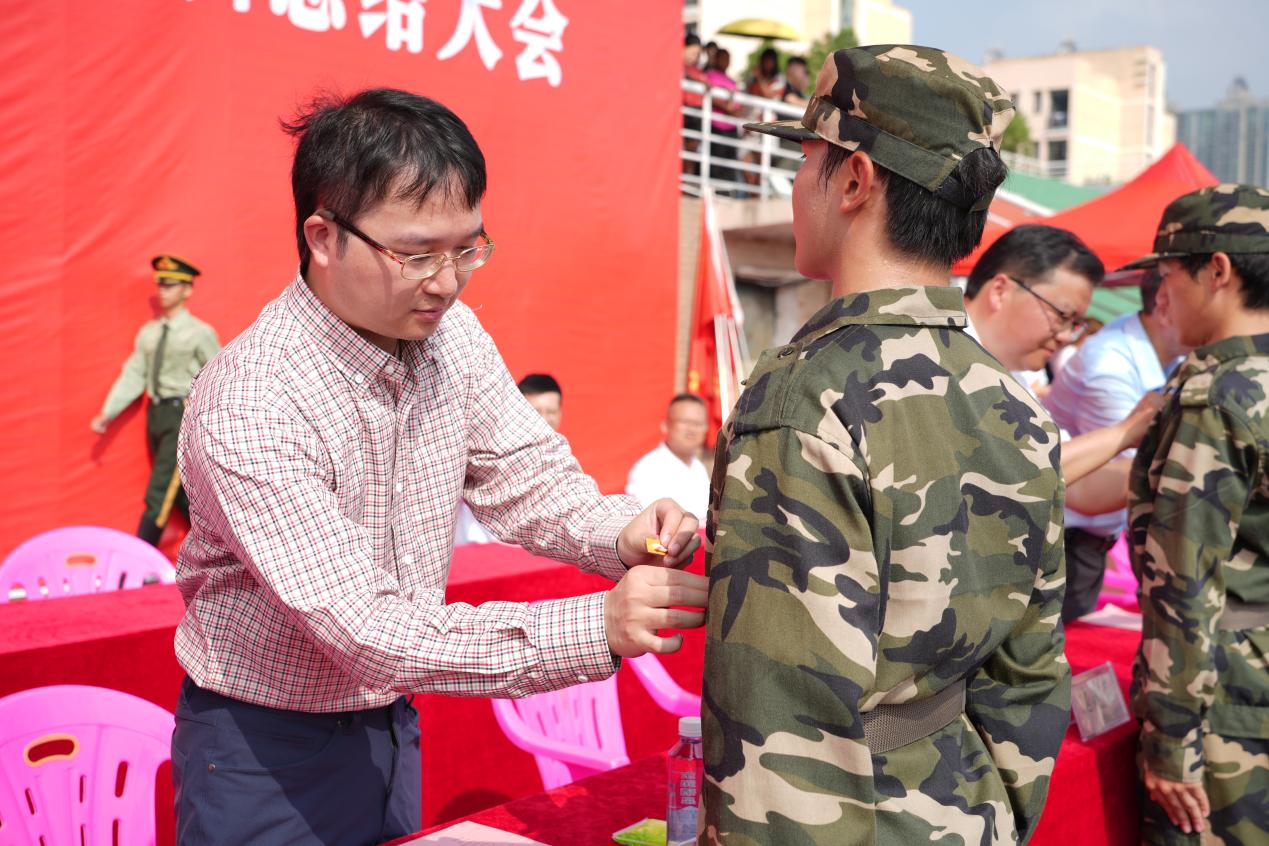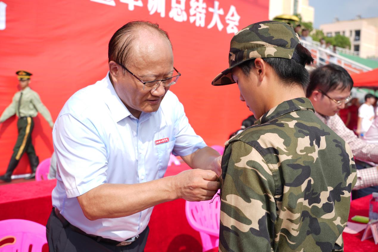 党委委员、校长助理、武装部部长邹建民在军训总结讲话中,向全体辛勤付出的教官们表示衷心感谢,并向受到表彰的先进单位、先进个人和顺利完成军训任务的2025级同学们致以热烈祝贺。他勉励大家要继续巩固和发扬军训过程中的家国情怀和爱国热情,将军训中培养的纪律意识、拼搏精神和团队协作能力内化为宝贵的精神财富,为实现中华民族伟大复兴的中国梦贡献青春力量。